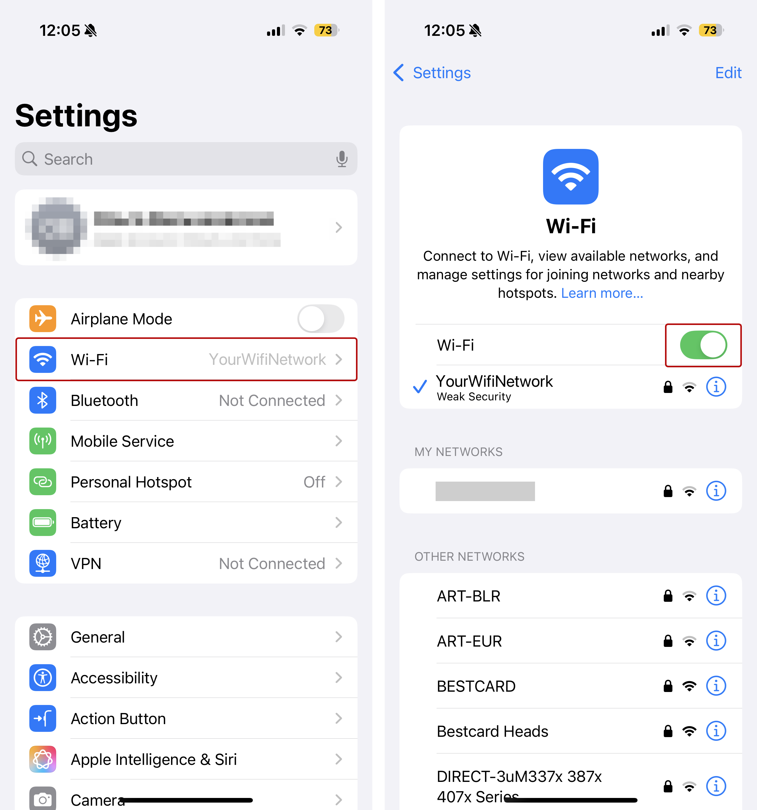 - Disable Wi-Fi in your phone's settings to ensure you're connected only to mobile data.