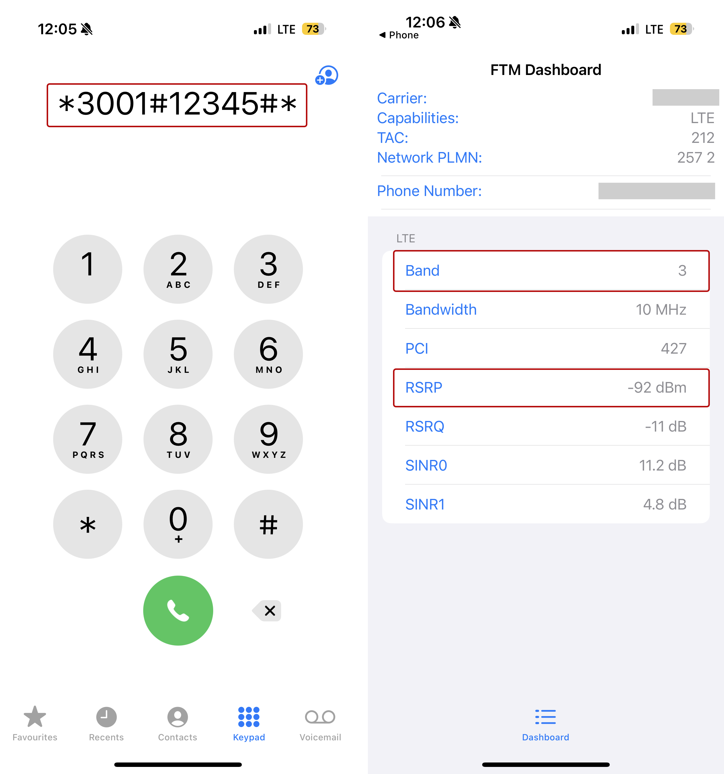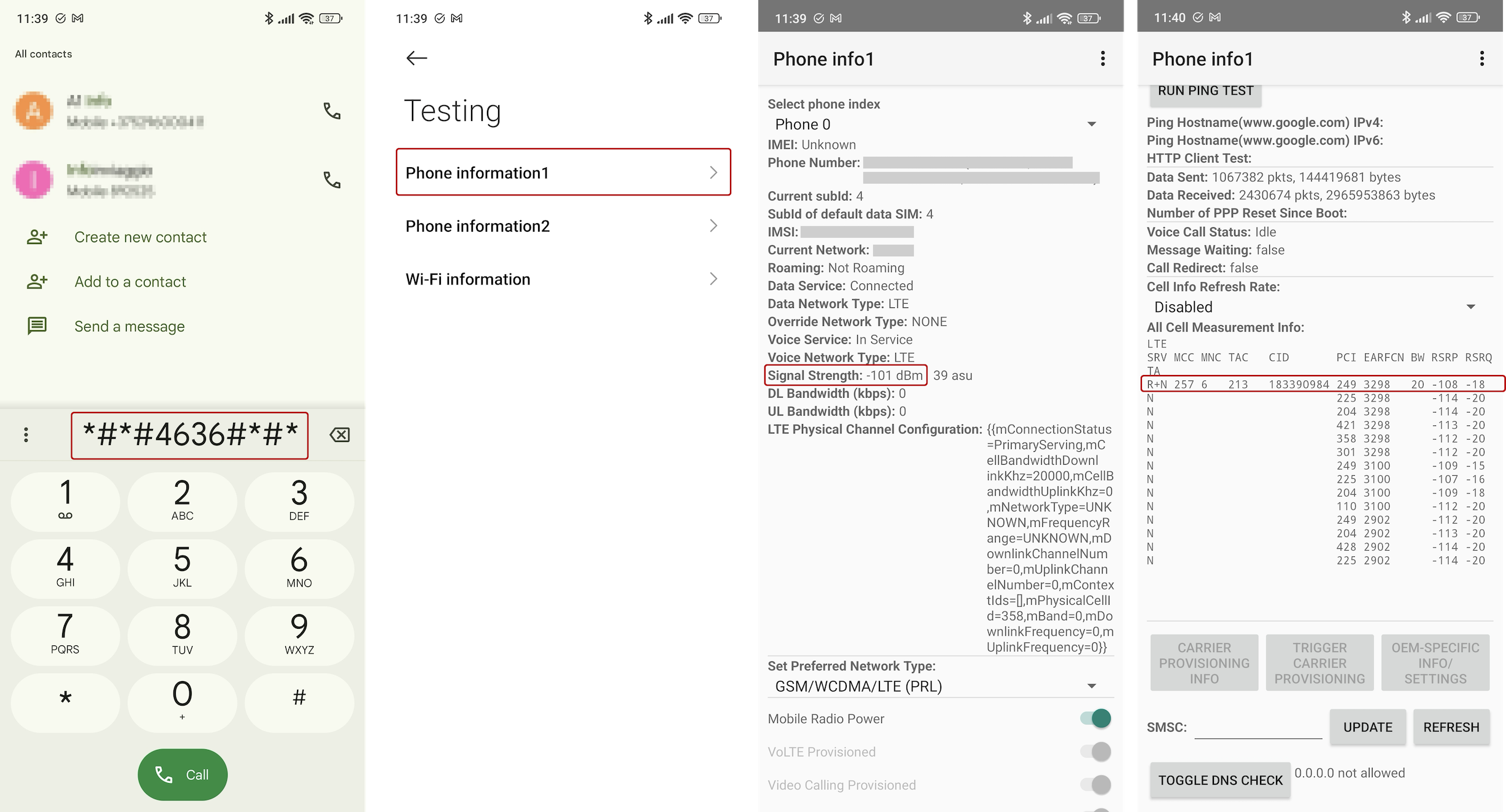 - Example: If "Band Info" shows 3, it means the phone is using LTE Band 3 (1800 MHz).