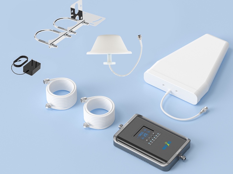 The kit has all the required elements, namely powerful outdoor and indoor antennas, a booster box, coaxial cables, mountings, fittings, a power supply, and a user manual.